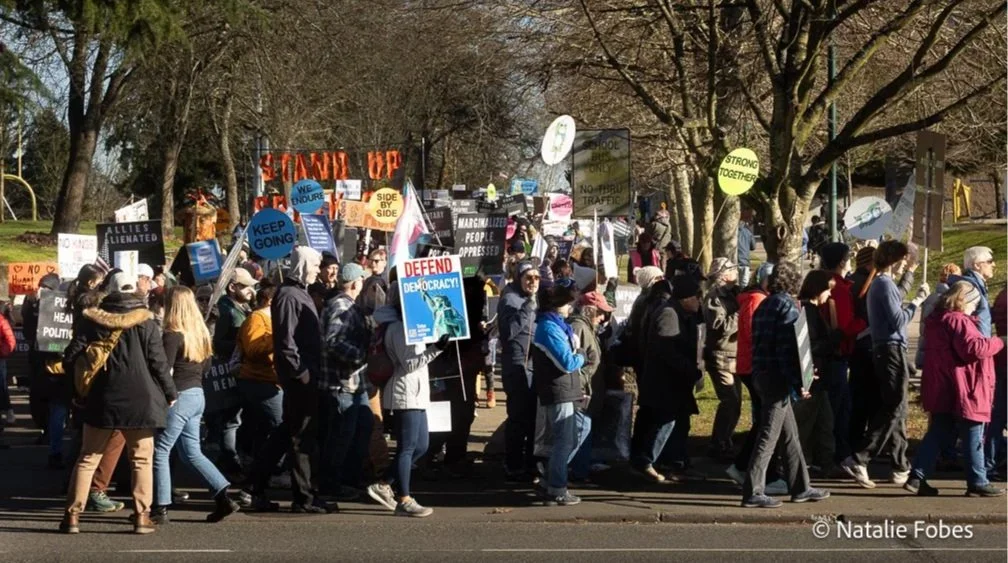 Hundreds of people turned out for We’re Still Standing on Jan 24, 2026. The rally and march was organized by West Seattle Indivisible, Evergreen Resistance and 50501.