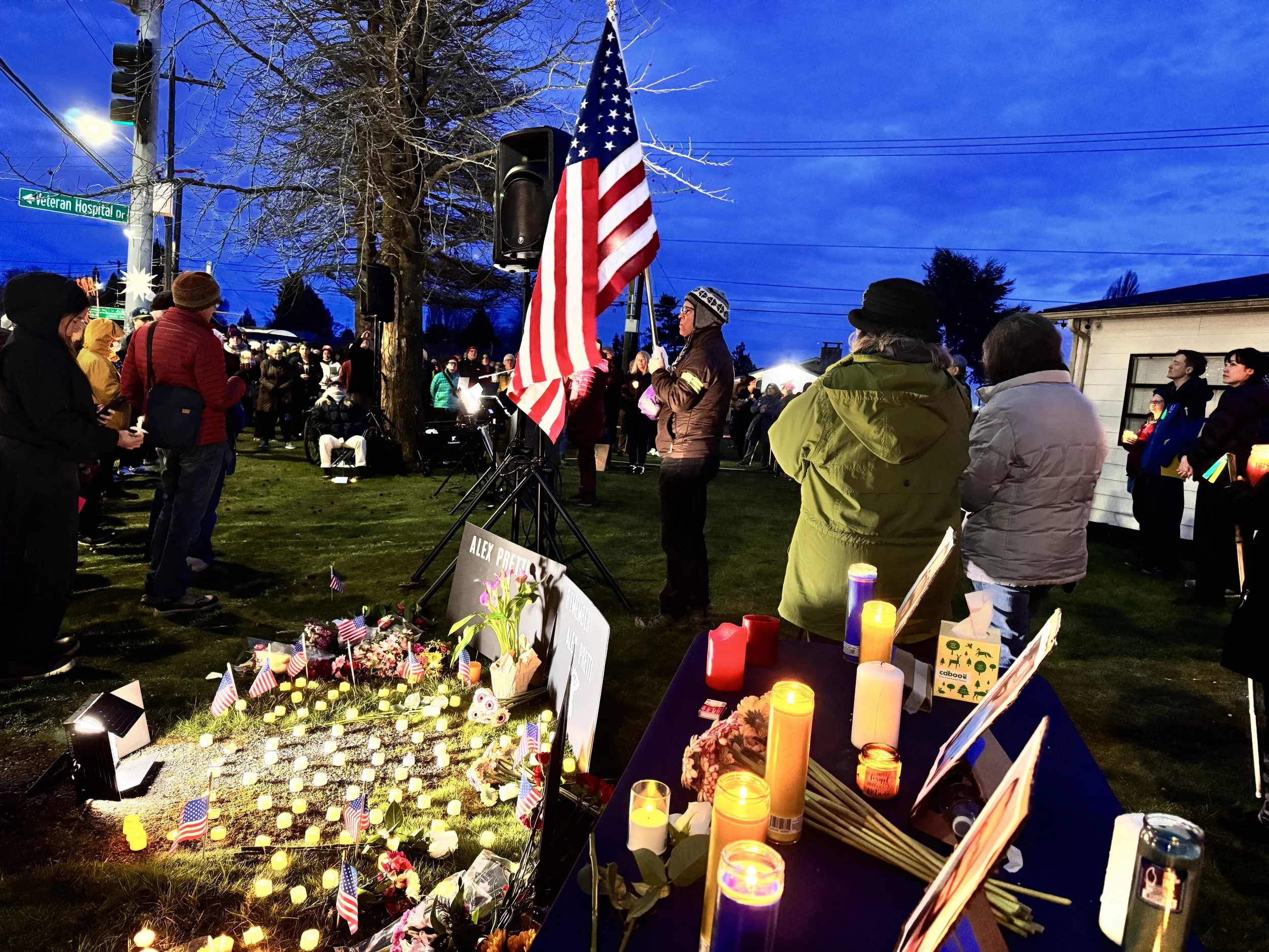 More than 150 people, including WSI members, held a vigil at the Veterans Hospital on Beacon Hill to honor Alex Pretti who was killed by Federal agents January 24, 2026.