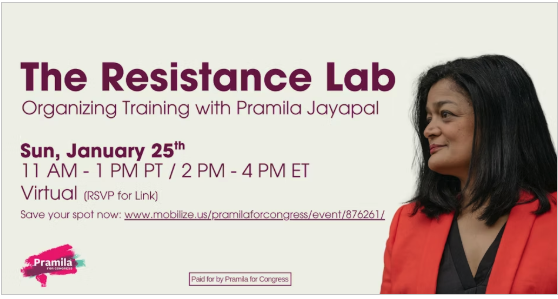 The Resistance Lab was developed with experts who have researched and studied democratic backsliding around the world and the non-violent movements that have emerged to challenge those authoritarian leaders. We also draw from many toolkits for effective tactics and frameworks as well as from Pramila’s own background leading successful organizing movements for economic and social justice for two decades.